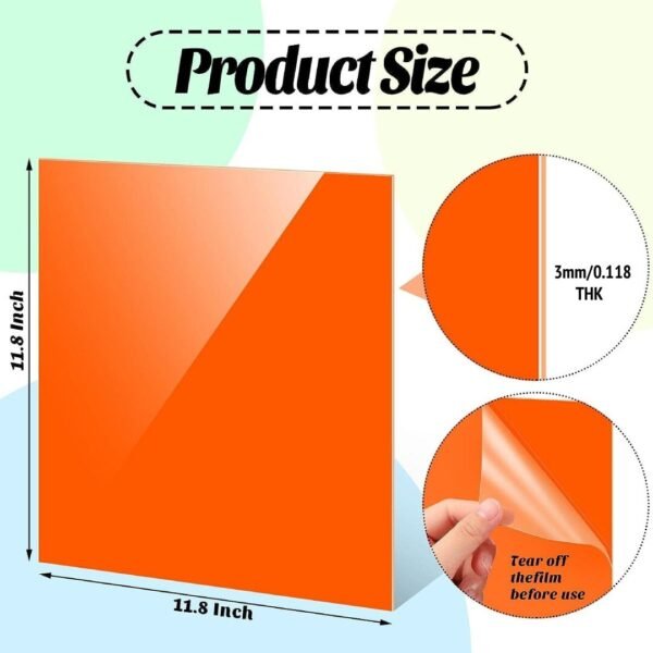 Amber Cast Acrylic 3mmǀ Translucent PMMA ǀ 12X12 INCHES ǀ CNC, Display ,DIY Crafts ǀ 3MM THK ǀ Orange Tinted Acrylic